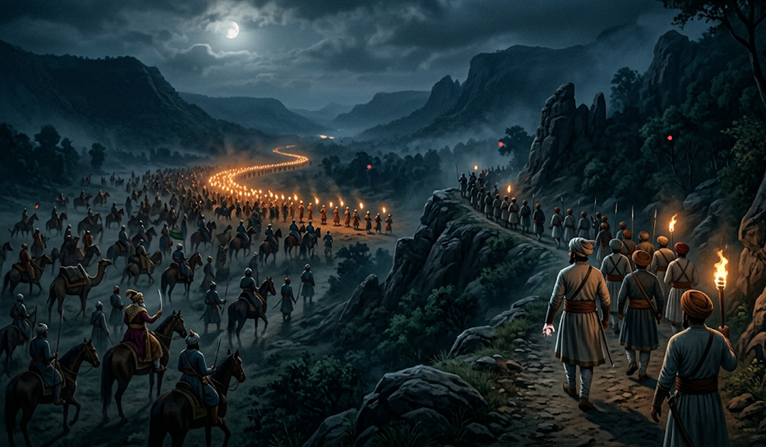 5 अप्रैल, 1663 की काली रात. आसमान में बादल छाए थे, जो मराठों के लिए वरदान साबित हुए. महाराज ने अपने मावलों को संबोधित करते हुए कहा, “आज का कार्य केवल युद्ध नहीं, बल्कि स्वराज्य के सम्मान की रक्षा है. यदि सफल हुए तो इतिहास रचेंगे, और यदि वीरगति मिली तो अमर हो जाएंगे.”